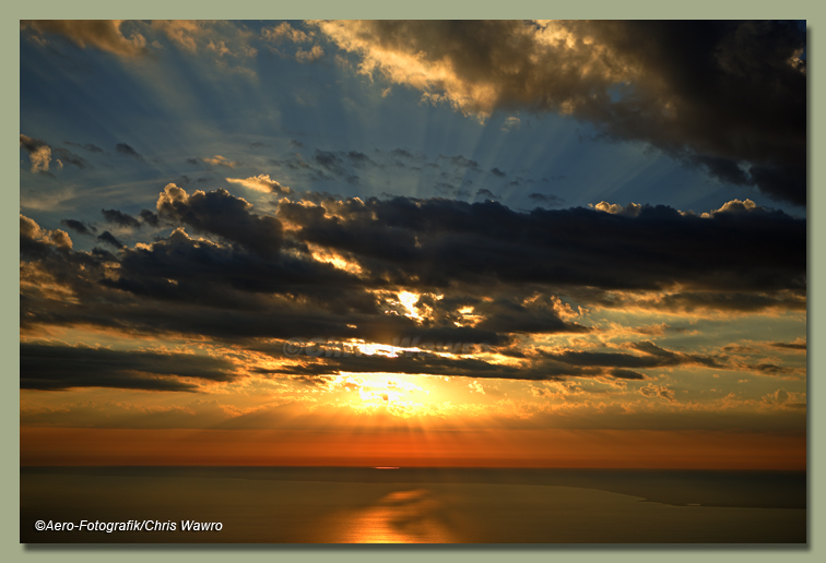 The beauty of a sunset from 10,000 ft over Door County with the Bay of Green Bay in view.
